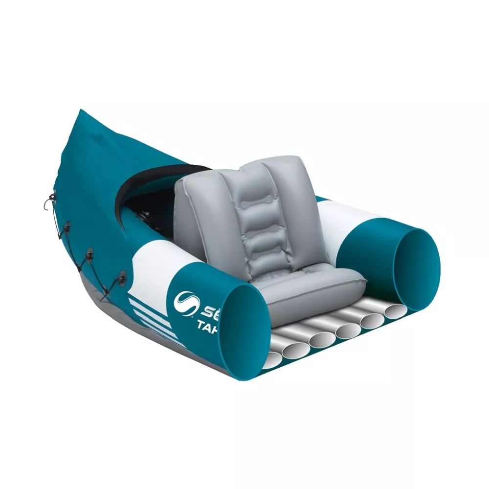 Das Tahaa von Sevylor ist ein klassisch zeitloses Kajak für Ausflüge und Freizeitabenteuer auf dem Wasser. Die leichte und robuste Konstruktion eignet sich  auch gut für Einsteiger. Mit geringem Packmass lässt sich das unter 8 kg leichte Schlauchkajak einfach verstauen und transportieren. Aus strapazierfähigem PVC gefertigt, ist das aufblasbare Kajak resistent gegen Sonne, Öl und Meerwasser. Für zusätzlichen Komfort zeigt Sevytest deutlich an, wann der richtige Luftdruck erreicht ist. Das Kajak Tahaa von Sevylor ist gemacht, um mit Familie und Freunden eine gute Zeit auf dem Wasser zu geniessen.