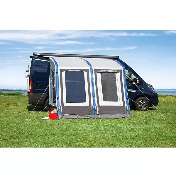 Das aufblasbare Vorzelt dwt Space Air HQ (High Quality) ist dank seiner 280 cm Zelttiefe ein wahres Raumwunder. Das dwt Space Air HQ ist mit zwei Kedern ausgestattet und kann dadurch auch an einer Markise befestigt werden.