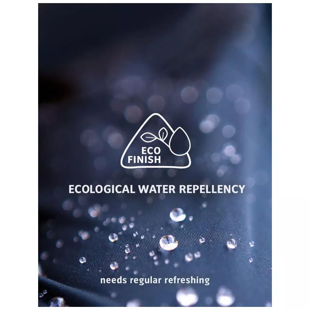 Diese wasser- und schmutzabweisende Ausrüstung wird auf den Oberstoff des Produktes aufgebracht. Dadurch perlen Regentropfen ab – und das ohne den Einsatz von umweltschädlichen Fluorcarbonen (PFC). Das schützt vor Regen und hält die Natur sauber. Für eine dauerhafte Wasser- und Schmutzabweisung ist eine regelmässige Nachbehandlung nötig.