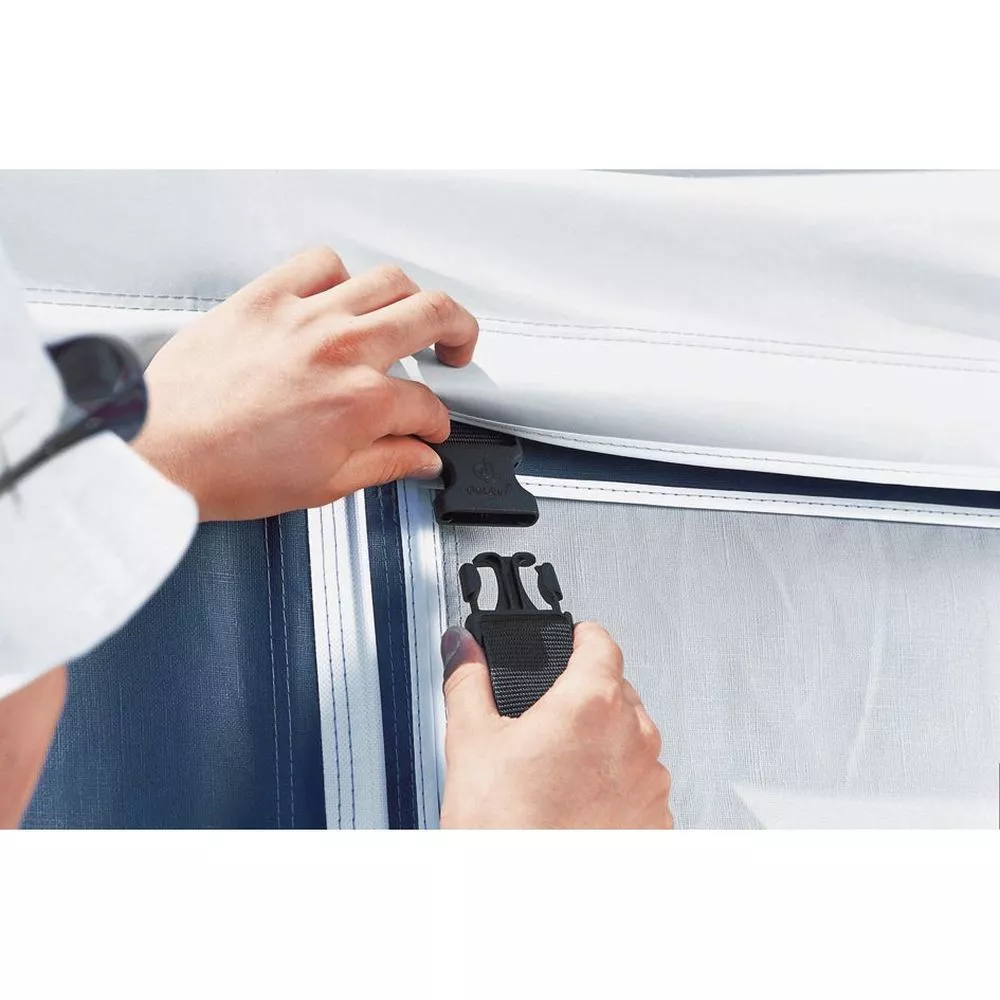 Sicherer Stand deines Vorzeltes bei Wind und Wetter mit dem Sturmband-Set von Herzog. Es ist passend für alle Herzog Vorzelte mit ensprechender Clip-Vorrüstung.