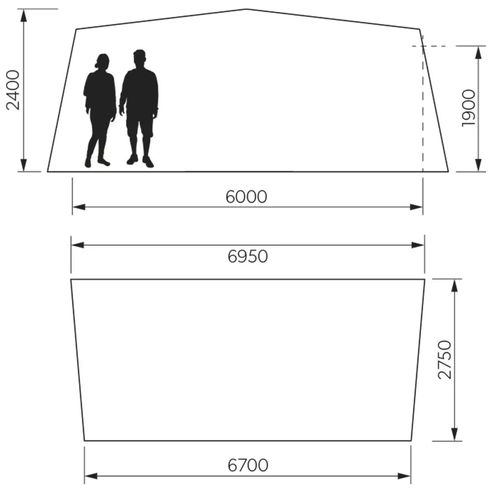 695/670 x 275 x 240 cm (BxTxH)