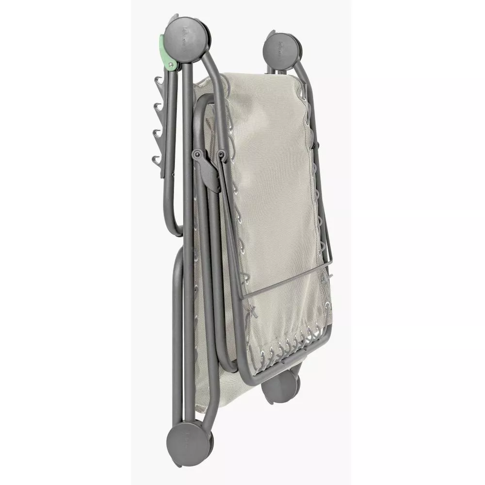 Die Sonnenliege Lafuma Siesta L hat zwei Funktionen. Diese Liege ist perfekt um ein Sonnenbad am Swimmingpool zu nehmen oder sich eine erholsame Pause im Garten zu gönnen. Desweiteren kann sie als Zustellbett zu Hause oder beim Camping genutzt werden. Den weichen und angenehmen Liegekomfort hat sie der Gummischnuraufhängung zu verdanken. Die Strand-Liege ist widerstandsfähig und spart Platz beim verstauen, da man sie zusammenklappen kann.