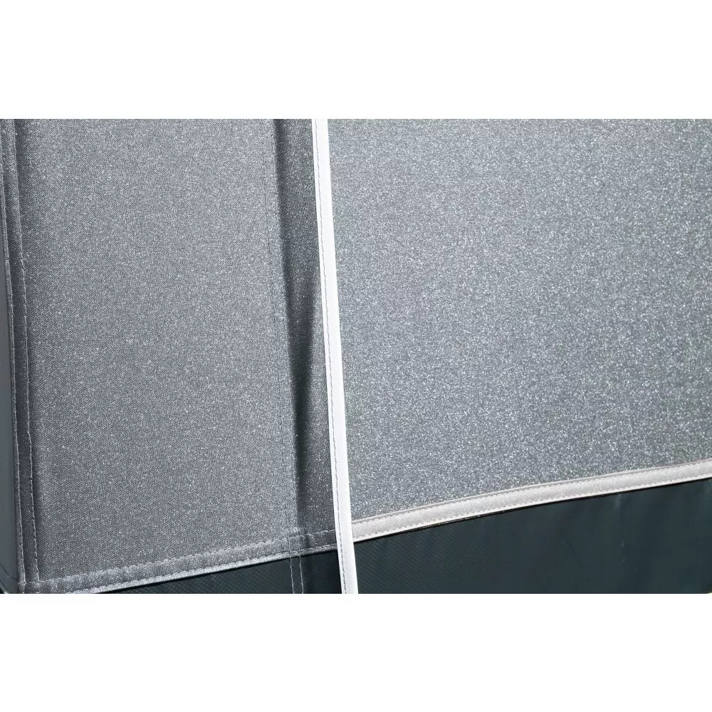 Werden alle Front- und Seitenelemente entnommen, schafft man sich ein Schatten spendendes, stabiles Wohnwagen-Sonnendach.